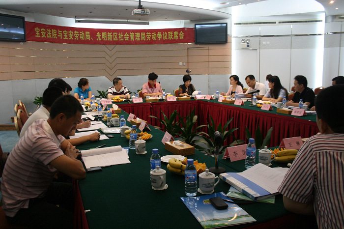 自2008年宝安法院与辖区劳动行政部门建立联席会议机制以来,宝安法院与辖区劳动行政部门共召开了三次联席会议。本次联席会议主要讨论了劳动合同的双倍工资适用、非法用工的处理、规范欠薪垫付工作、“三来一补”企业转型案件处理的实务中经常遇到的问题和法律适用情况。会上,宝安法院副院长符波、区劳动局副局长许进分别作了发言,一致认为联席会议机制的构建进一步加强了法院与劳动行政部门的联系与配合,在更好解决劳动争议案件,构建辖区和谐劳资关系,维护辖区的繁荣稳定方面发挥了积极作用。