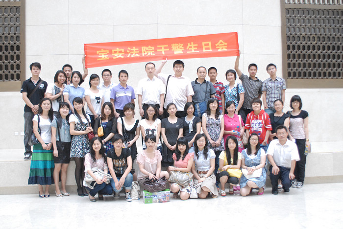 ,宝安法院在恰逢深圳特区成立三十周年之际,组织七月过生日的干警及家属走进了深圳博物馆,过了一个意义深远的生日。参观活动结束后,围绕“我与深圳同进步”这一主题,组织大家进行了座谈,大家结合法院争当排头兵的工作要求,畅谈感想,相互交流。作为特区司法工作者,资深法官回顾起艰辛的创业历程,感慨万千;年青干警感受着深圳催人奋发的气息,心潮澎湃。在轻松活泼的趣味互动中达到高潮。