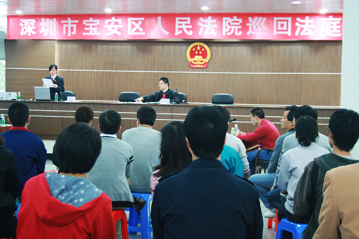 沙井法庭特意遴选了在辖区多发易发的劳资纠纷案件进行审理,通过庭审进行法治教育,促进类似纠纷的化解。来自福永街道全部13个社区的司法联络员、治保主任、工厂企业代表和员工代表130多人旁听了庭审。