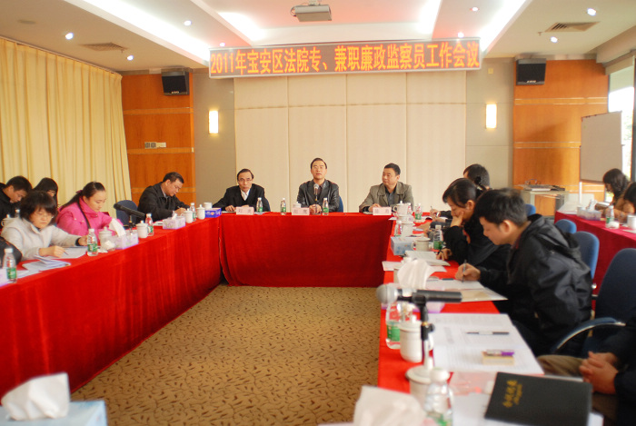 至14日,宝安法院召开专兼职廉政监察员工作会议,全面总结过去一年的纪检监察工作,安排部署新一年工作。院党组书记、院长