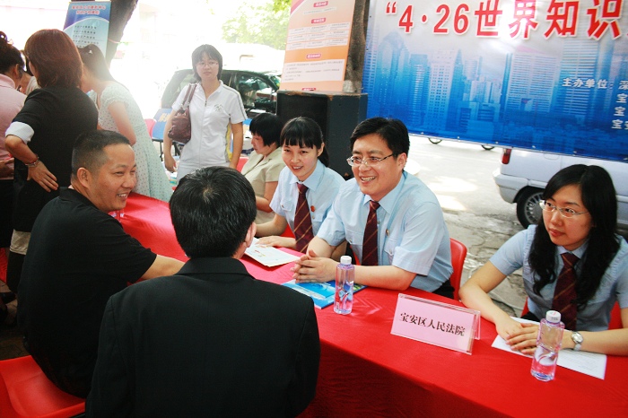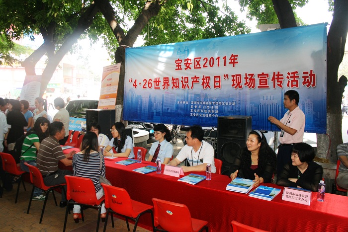 4月26日是“世界知识产权保护日”,我院知识产权庭与深圳市市场监督管理局宝安分局、宝安区科技创新局、宝安区企业援助中心共同在宝安区西乡佳华商场前举行了“保护知识产权,促进创新发展”的主题宣传活动。活动中发放宣传资料两百余份,并向前来咨询的市民讲解知识产权相关知识。