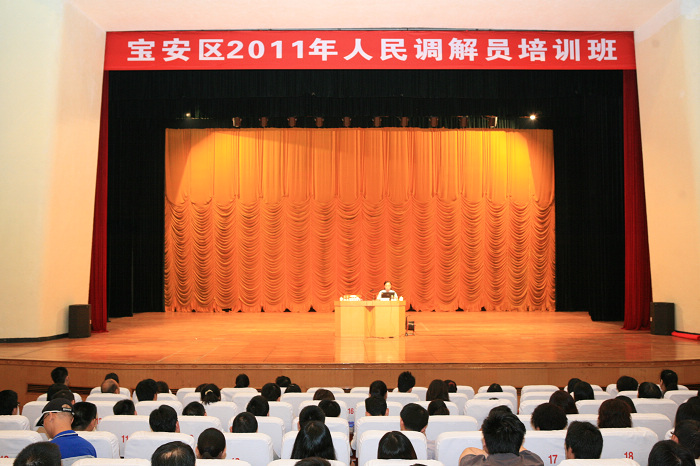 9 月27日 ,为贯彻落实宝安区委区政府关于实施“素质工程”的相关部署,全面提升全区人民调解员依法调解的能力和水平,各街道司法所、法律援助服务中心全体工作人员、社区调解主任、专职调解员及部分企事业单位调解骨干共500多人参加了由宝安区司法局统一组织的人民调解员培训。