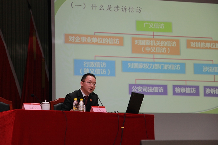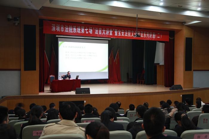 12 月23 日 ,我院承办了深圳市法院系统“法官大讲坛”活动暨举办我院文化建设系列讲座。我院立案庭副庭长郑松首先结合自身工作,做了主题为“怎样看待和化解涉诉信访”的讲座,重点讲述了涉诉信访的成因、身为法院工作人员如何合法合理应对等问题。随后,我院法官协会秘书长、中国摄影家协会会员李宪民通过自己数十张优秀的摄影作品,与大家进行了一场摄影艺术的交流展示。市中院党组成员、政治部主任蒋溪林最后作了点评。两级法院200多名干警参加了讲座。